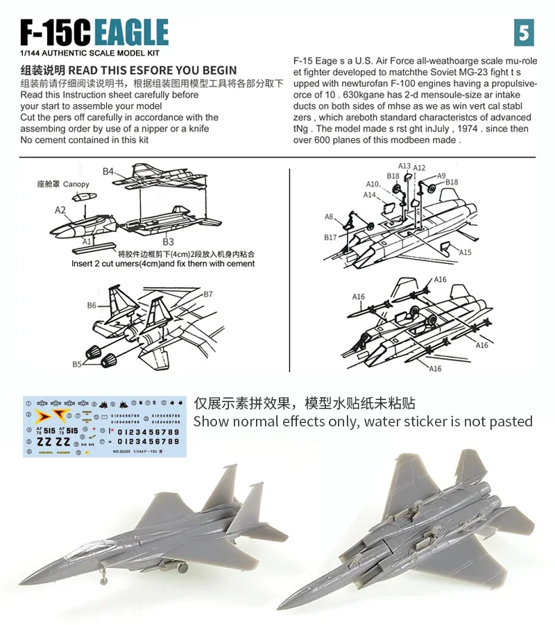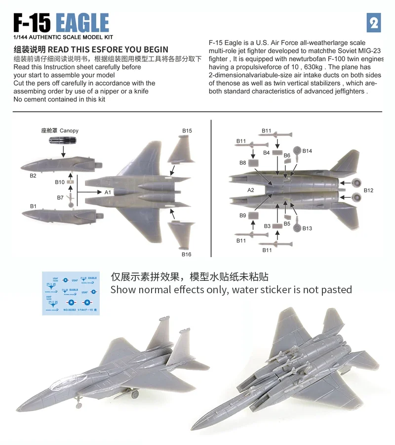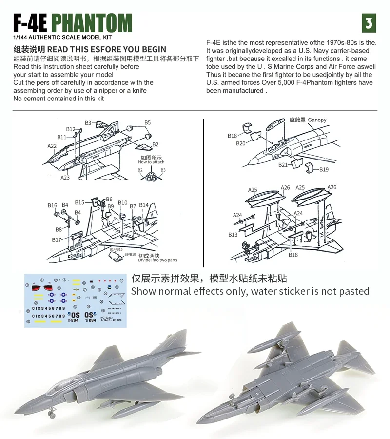 1/144 Assembly Fighter Model USA F14 Tomcat F15 Eagle F-4E Phantom Plastic Simul