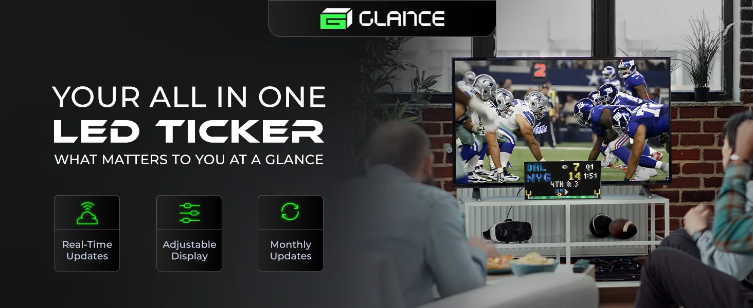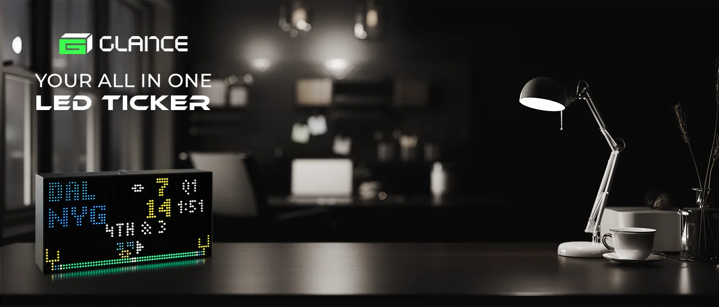 Customizable Display Personalize your Glance LED Ticker with ease through your phone or browser. Display your favorite sports scores, stock prices, weather updates, and more.