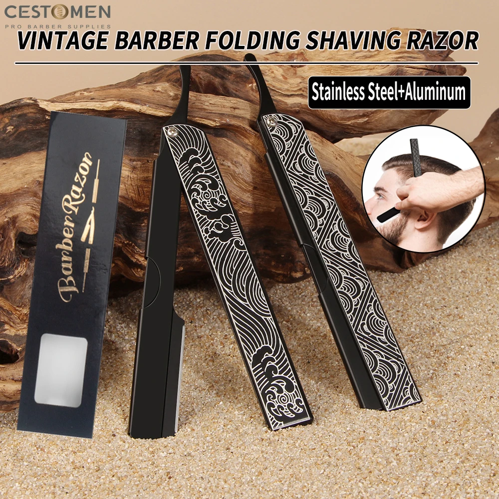 New Professional Men Shaving Razor Barber Hair Removal Tools Carving Folding Aluminum Alloy Safety Razor Barbearia Knife Holder